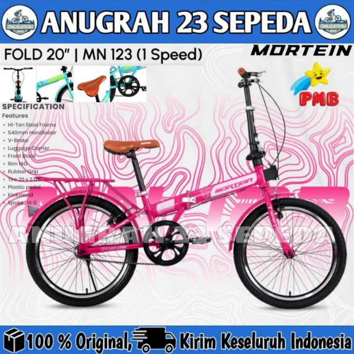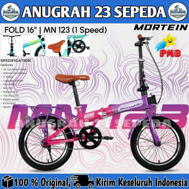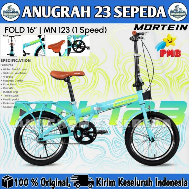 Sepeda Lipat Anak Dewasa MORTEIN MN 123 Single Speed Ukuran 16 dan 20 Inch By PMB