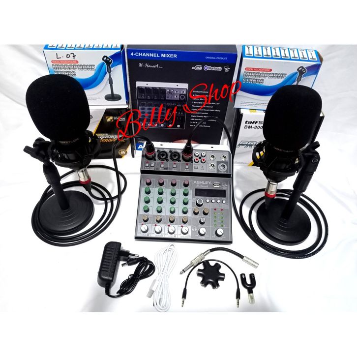 PAKET CAST 2 MIC BM 800 MIXER M HOUSE4,K POP 4 (PAKET 2 ORANG) SOUNDCARD