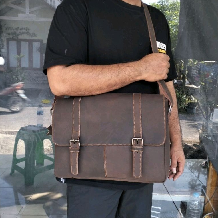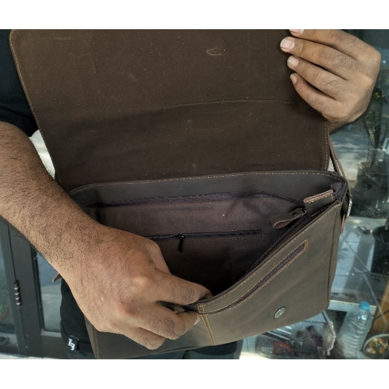 Tas Selempang Kulit Sapi Asli Elegan 4 Kantong