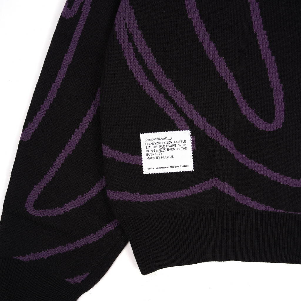 The Don's House HIRAKATA BOXY BLACK - Sweater Crewneck Cardigan Knitwear Bahan Rajut Hitam Pria Wanita Fleece Teba