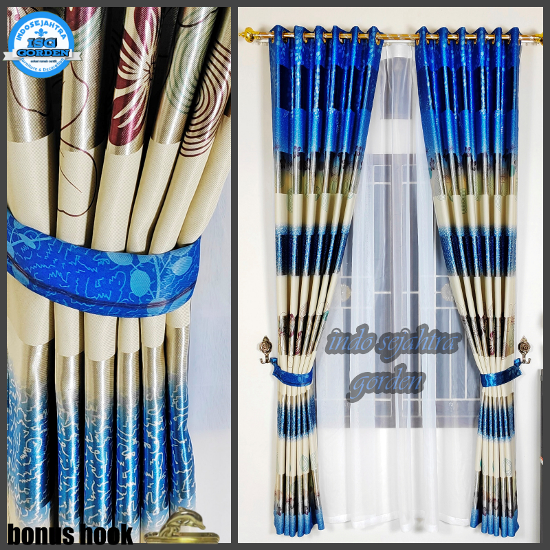 Gorden Pintu Kamar Tidur Aesthetic Blackout Import Printing Pink Hijau Biru Model Smokring