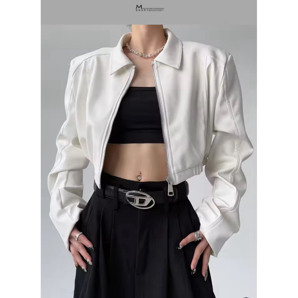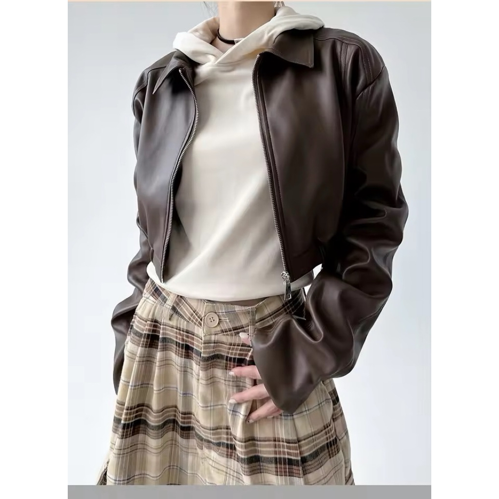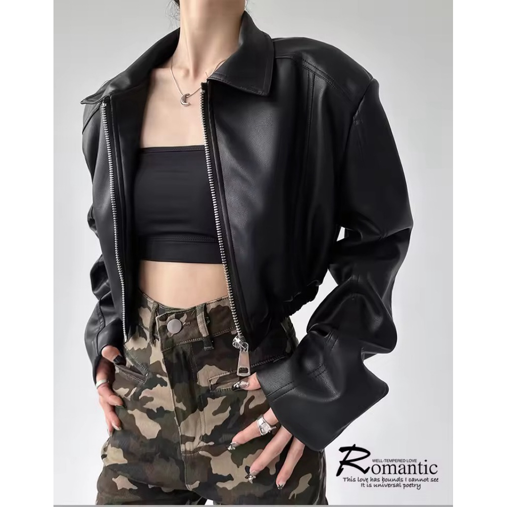 Dzakileather-Cropped Leather Jacket Wanita — Jaket Kulit Oversize Korea Look Premium