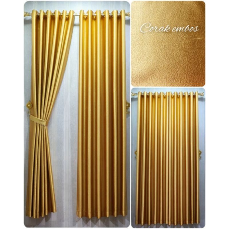 Gorden Blackout Polos Glossy Embos IMPORT Minimalis Super Duper TEBAL dan Mewah bonus tali gordeng jendela panjang gorden
