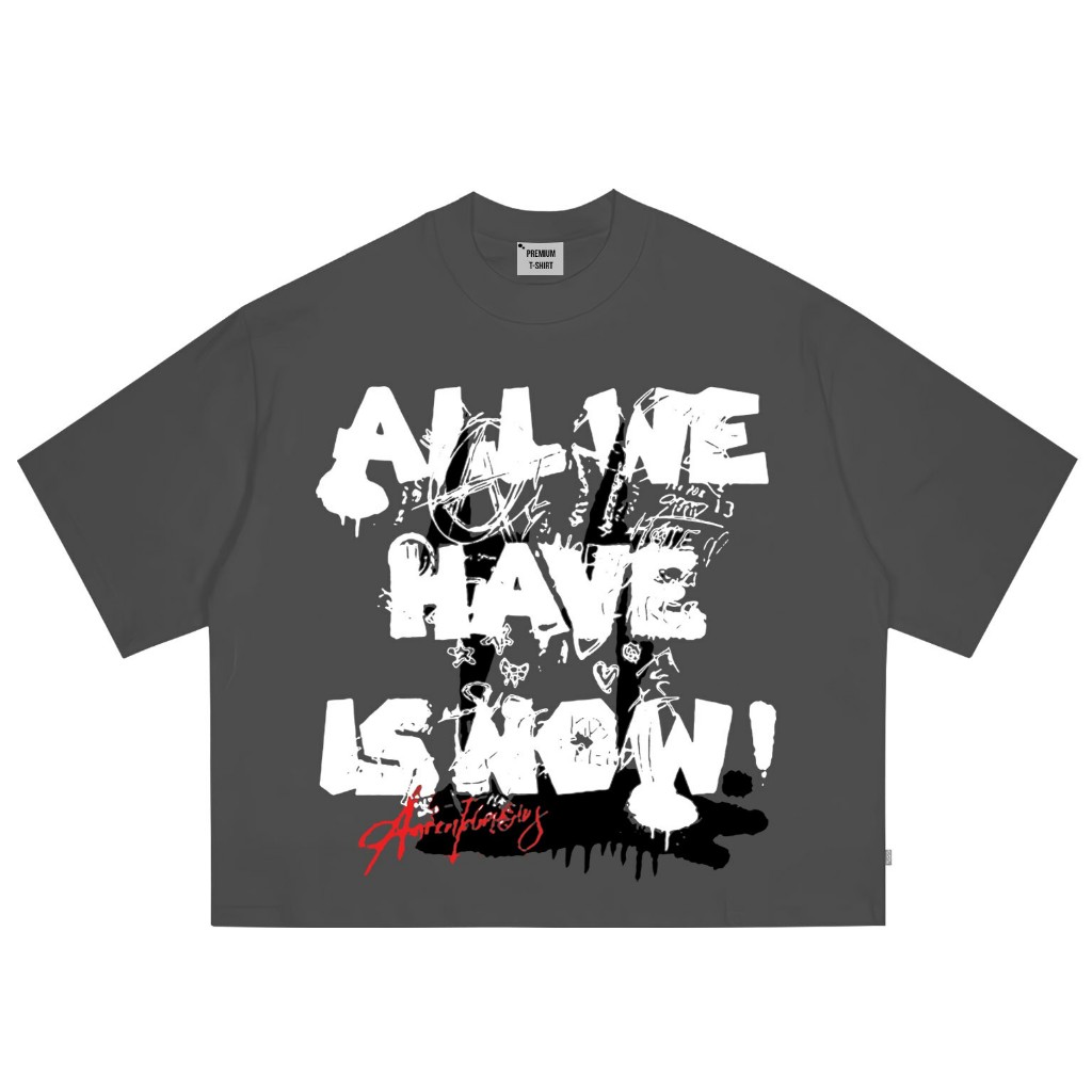 AccentAmbios Kaos Boxy Oversized All We Have is Now Steel Blue Pria dan Wanita - Cotton Combed 20s