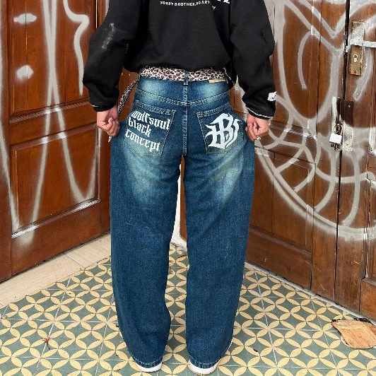 UNISEX Celana Jeans Wide Leg Wisker Lebar Gombrong Denim Panjang Nyaman
