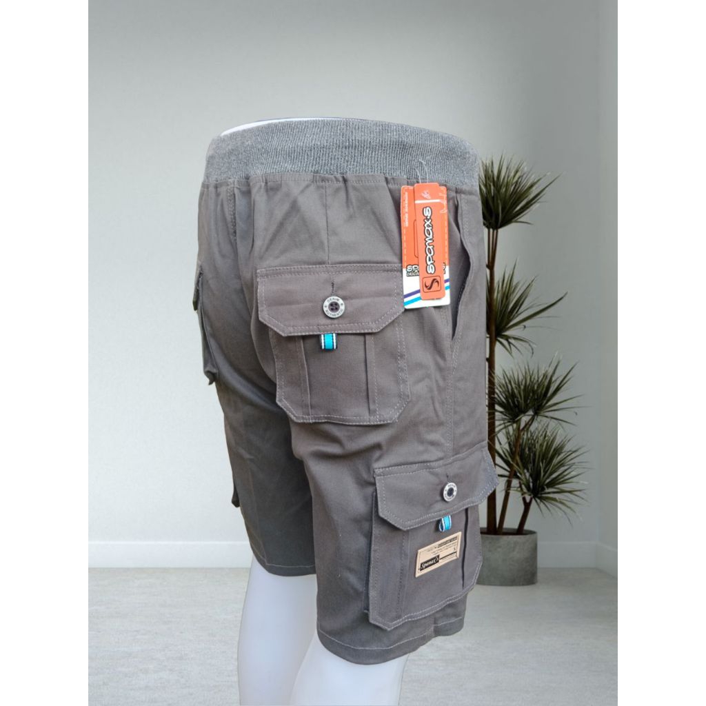 Celana Pendek Cargo Pria Pinggang Karet Rib Katun Twill Streth Nyaman,Banyak SakuSPANAX'S Original