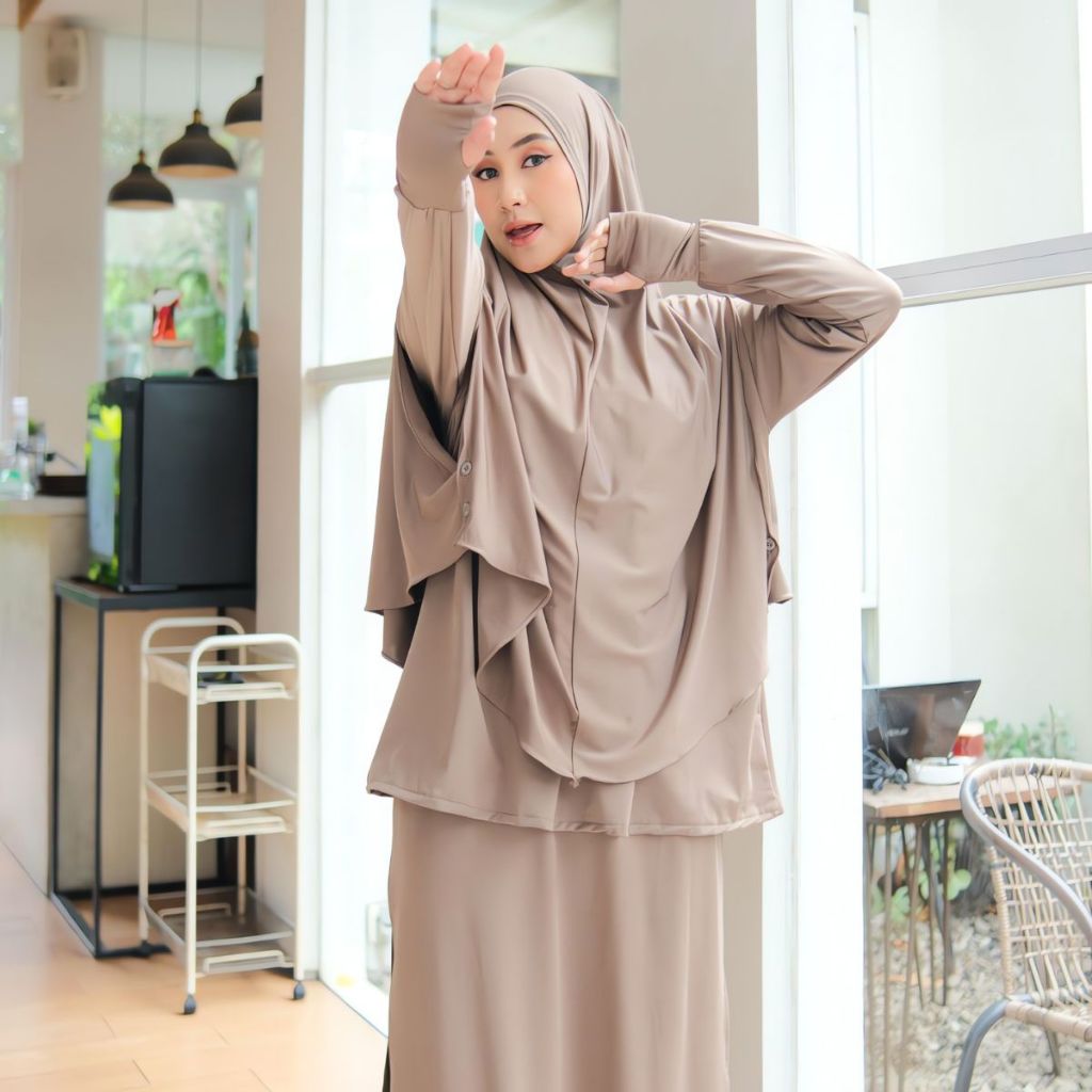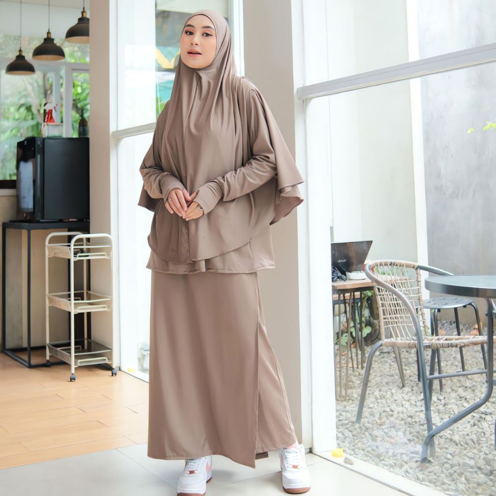 PRQUEEN | Denay Sporty Muslimah Set 3in1 | Baju Olahraga Wanita Model Rok Celana Hijab | Baju Olah Raga Syar'i Muslimah