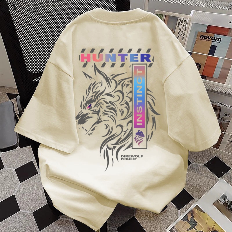 AUZY American retro Style T-shirt Oversize HUTER Print top| Kaos Wanita Hitam | Kaos pria dan wanita | Street Style 100 PERSENCotton top 11.13