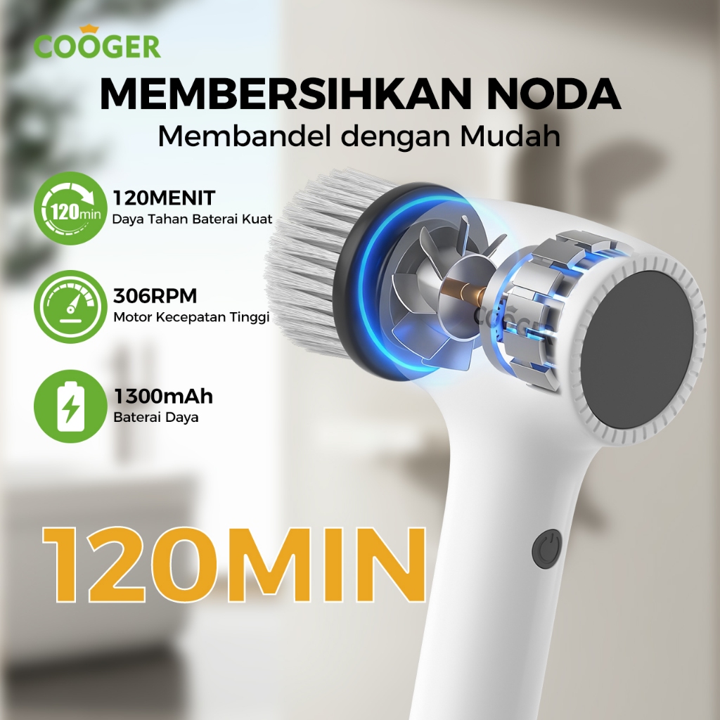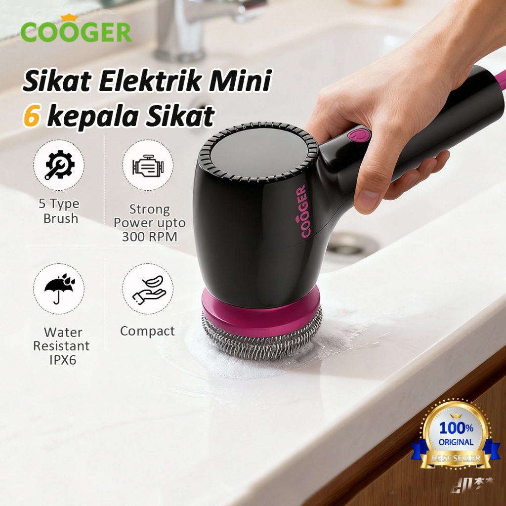 COOGER Sikat Elektrik Mini 5in1 Anti Air Sikat Elektrik Pembersih Velg Motor Velg Mobil Sikat Aquarium Daya Putar Kuat