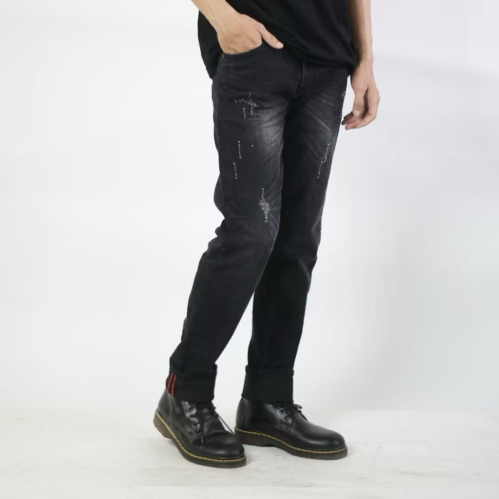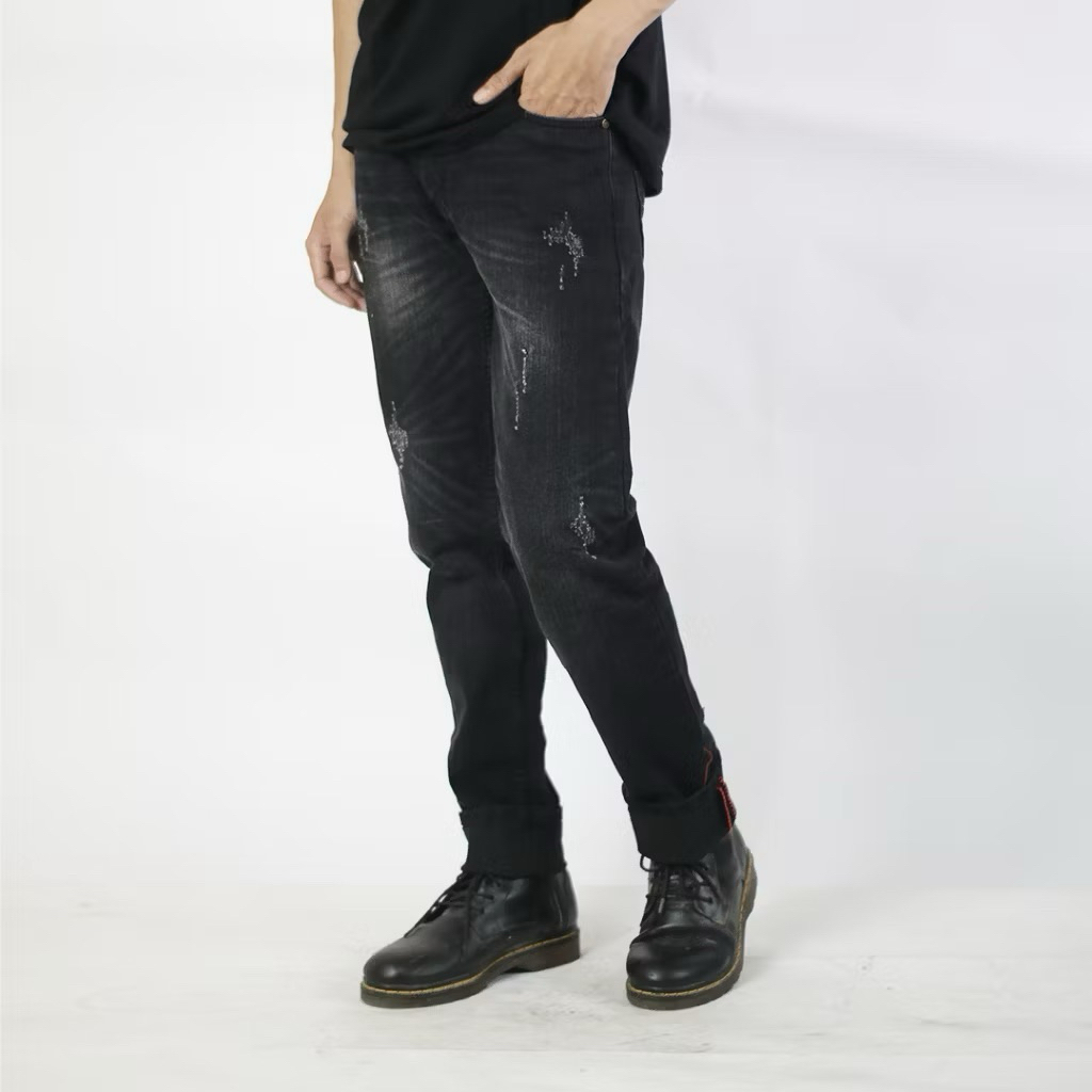 LIGHTBORN Celana Denim Pria Roger Wolfy Black Slimfit Selvedge, Long Pant Men
