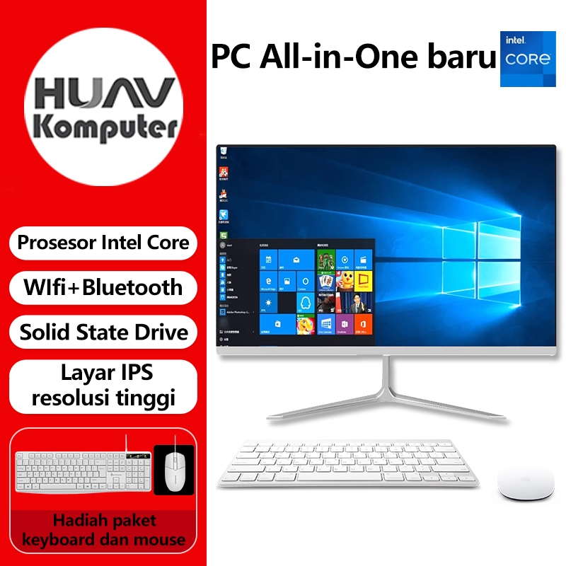 HUAV Komputer Full Set All-in-One PC Baru, Prosesor Core i5/i7, RAM 16G, SSD 512G, Full HD 19/22/24 Inci Pilihan, Untuk Rumah, Belajar, Kantor, gaming