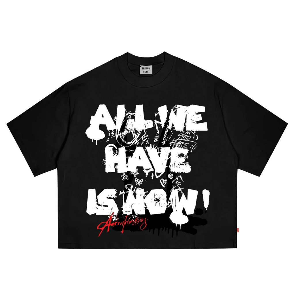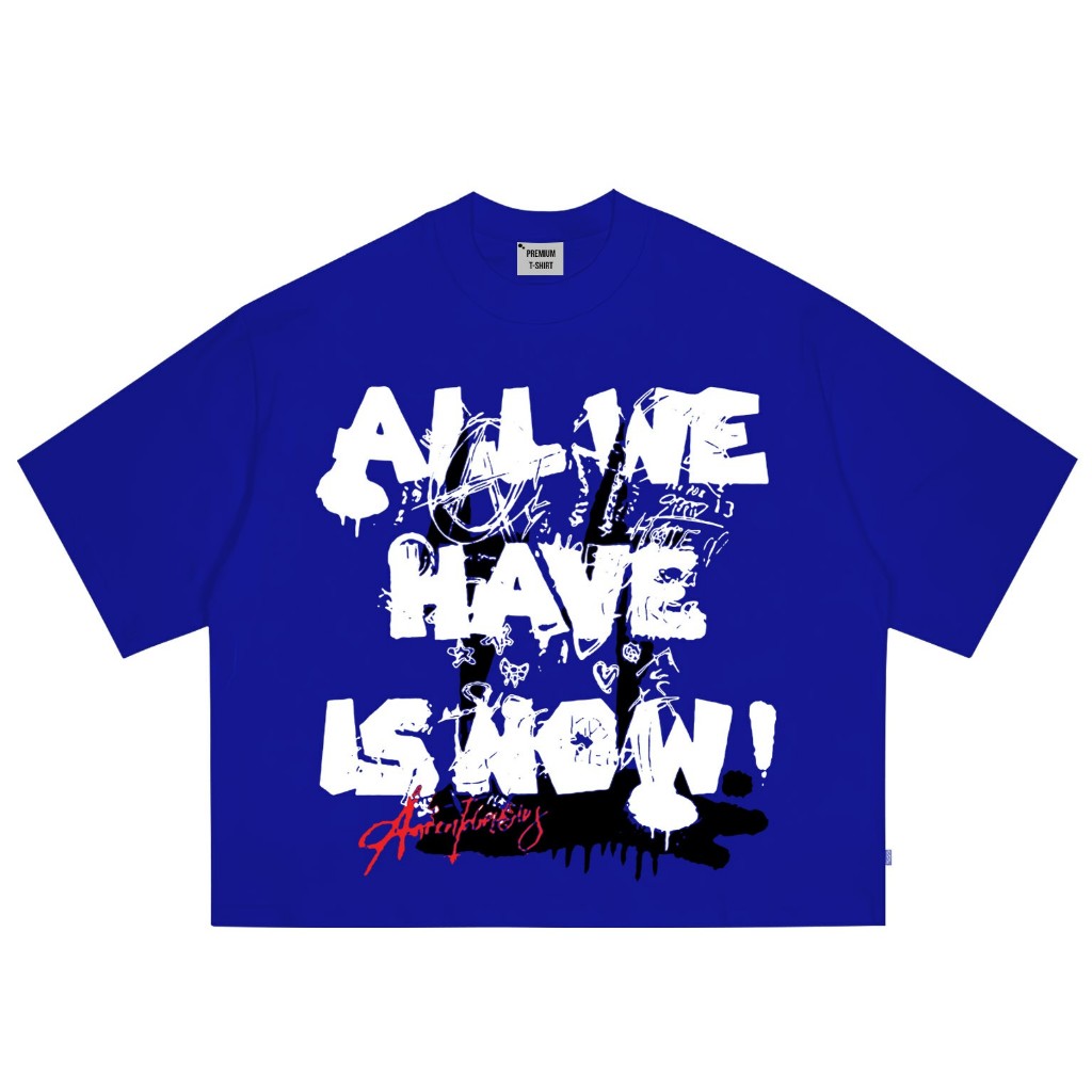 AccentAmbios Kaos Boxy Oversized All We Have is Now Steel Blue Pria dan Wanita - Cotton Combed 20s