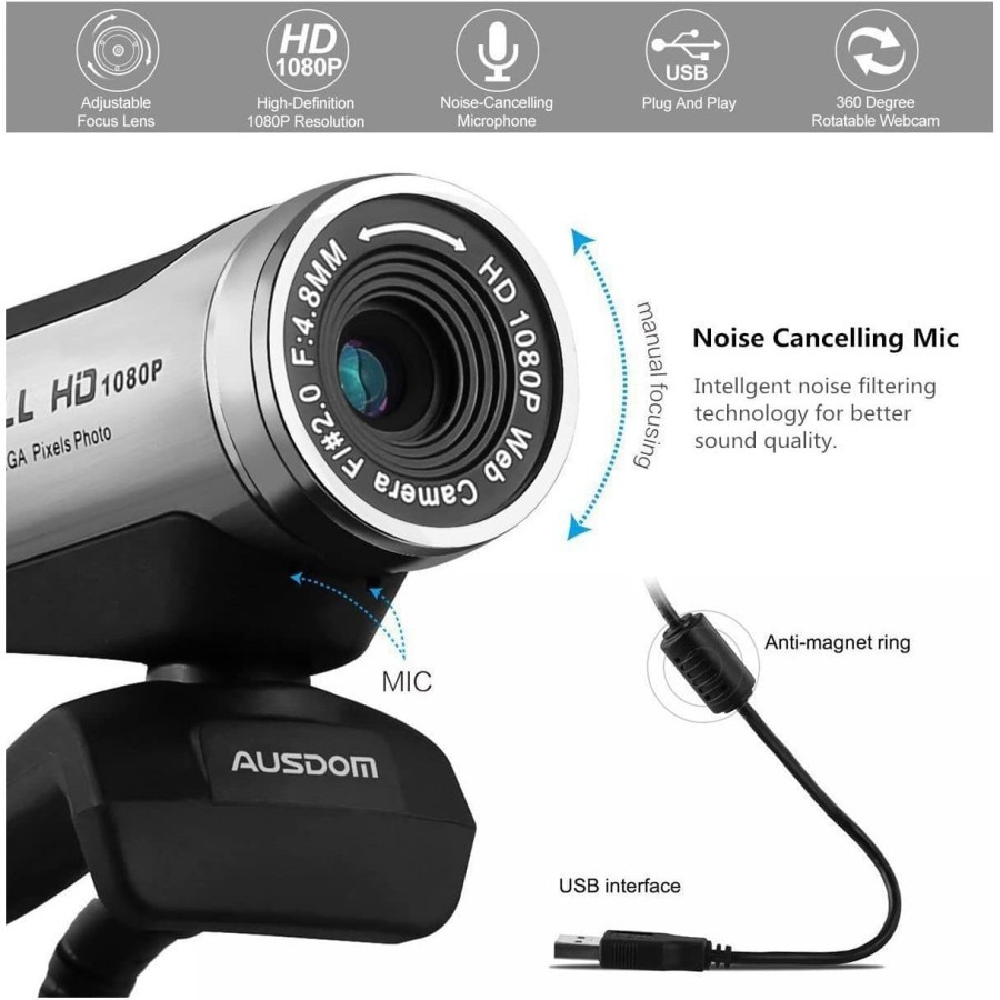 Ausdom WEM 1080P PC 12MP with Built-in Mic - AW615