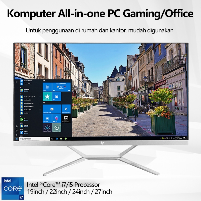 Lenovo Komputer All In One PC Intel Core i5/i7 RAM 8G16G SSD 256G512GB1TB AIO Desktop 19/22/27/24 Inch Monitor, WiFi/Bluetooth, Windows 10/11, Free Ke