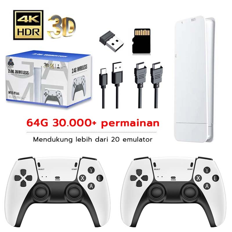M15Plus Game Stick 4K Wireless Gamepad 2Player HDMI Connect PS1 30.000+ Games Retro Game Console For TV + Computer + Proyektor