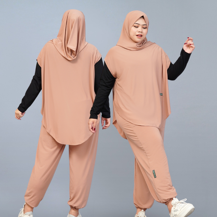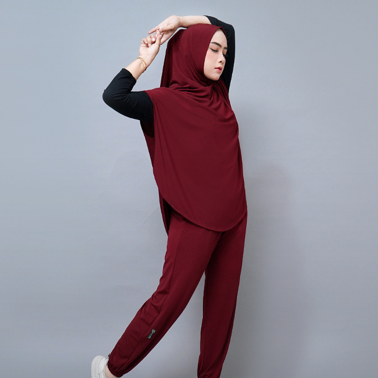 HIJACTIVE - Setelan Olahraga Jogging Senam Zumba Badminton Renang Wanita Muslimah Outer Hijab dan Celana Panjang Jersey Premium