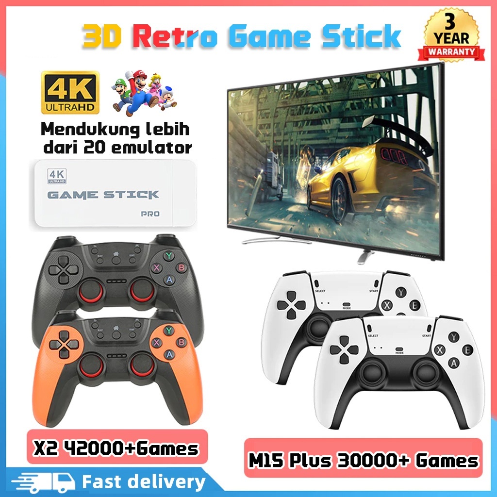 Versi Baterai-Game Stick 4K Wireless Gamepad 2 Player TV HDMI Connect PS1 30000+(M15 Plus) 418000+(X2)Games Penting Untuk Pertemuan Keluarga Konsol Game Retro Game Console