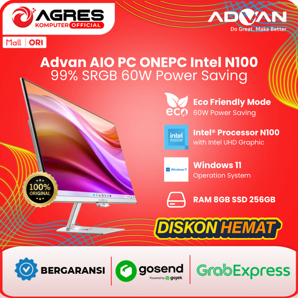 ADVAN AIO PC INTEL CELERON N100 RAM 8GB SSD STORAGE 256GB 23.8" FHD WINDOWS 11