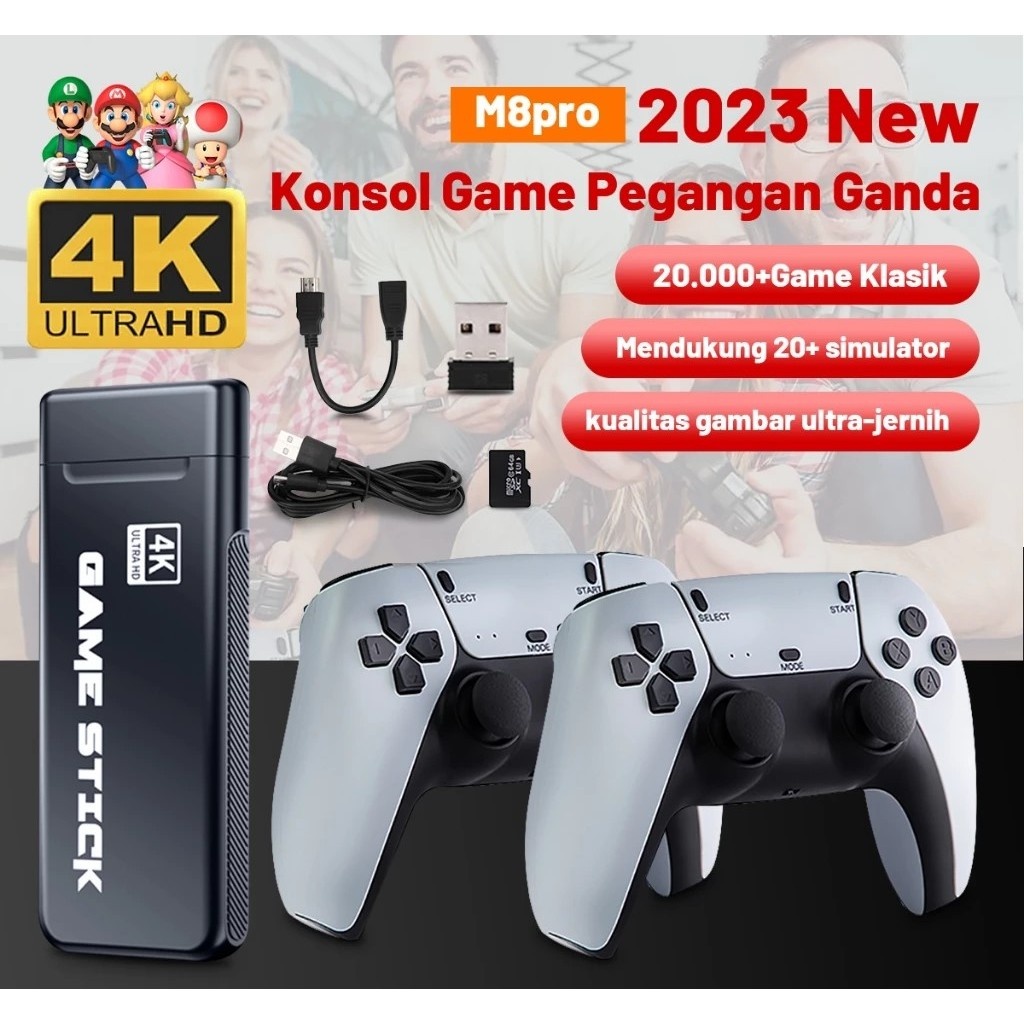 Game Stick 4K 20.000 Games UltraHD M8 Pro Console Portable HDMI 2.4GHz Wireless Controller, BERGARANSI RESMI - Techtonik
