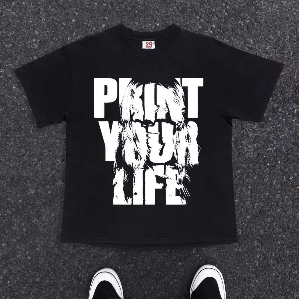 Kaos American Retro Style Motif Print Your Life Print Top Kaos Wanita Hitam Kaos Pria dan Wanita Kaos Cotton Combed 30s