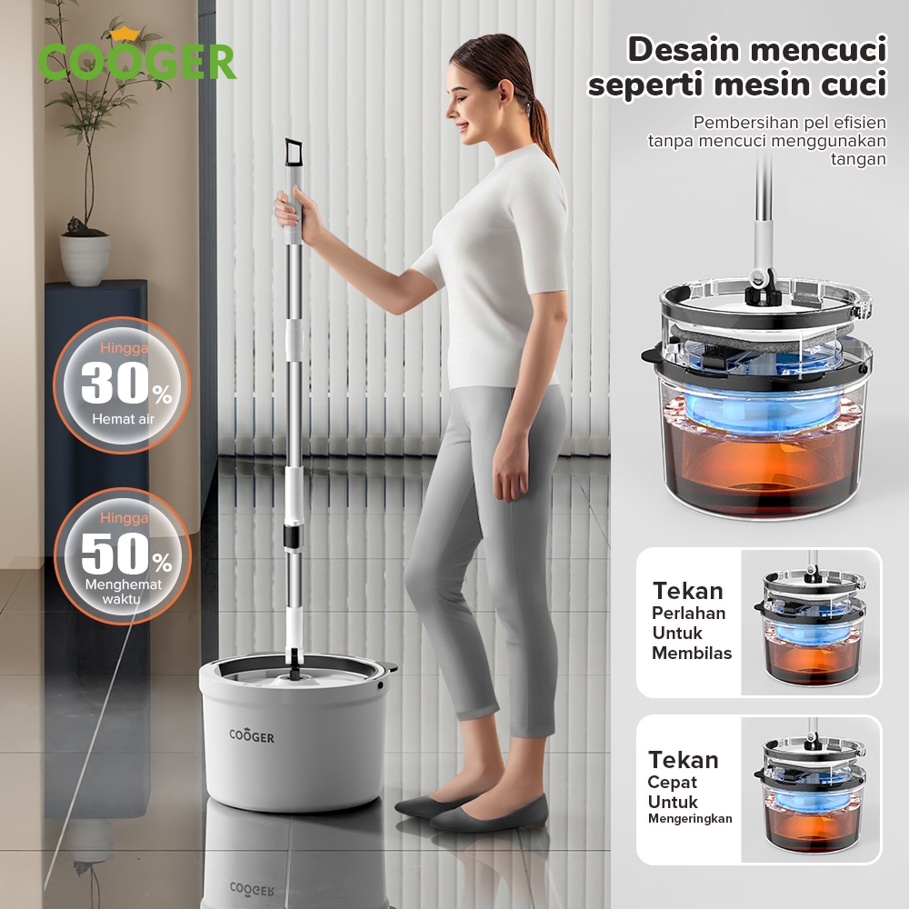 COOGER Alat Pel Lantai Pemisah Air Kotor Bersih Pengepel Panda Plus Ember Terpisah Kain Microfiber