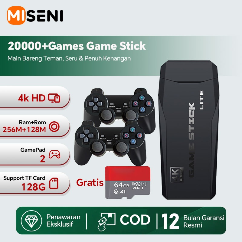 MISENI Game Stick Wireless Gamepad 2Player TV HDMI Connect PS1 20000+Games Penting Untuk Pertemuan Keluarga Konsol Game Retro Game Console