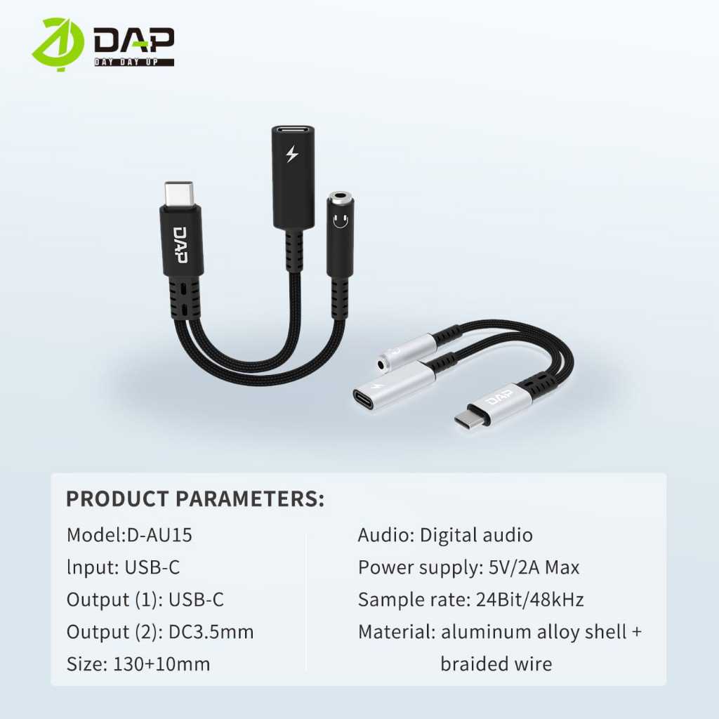 DAP D-AU15 Audio Splitter Type C to Type C & Female Jack 3.5mm Support Listen - Garansi 1 Tahun