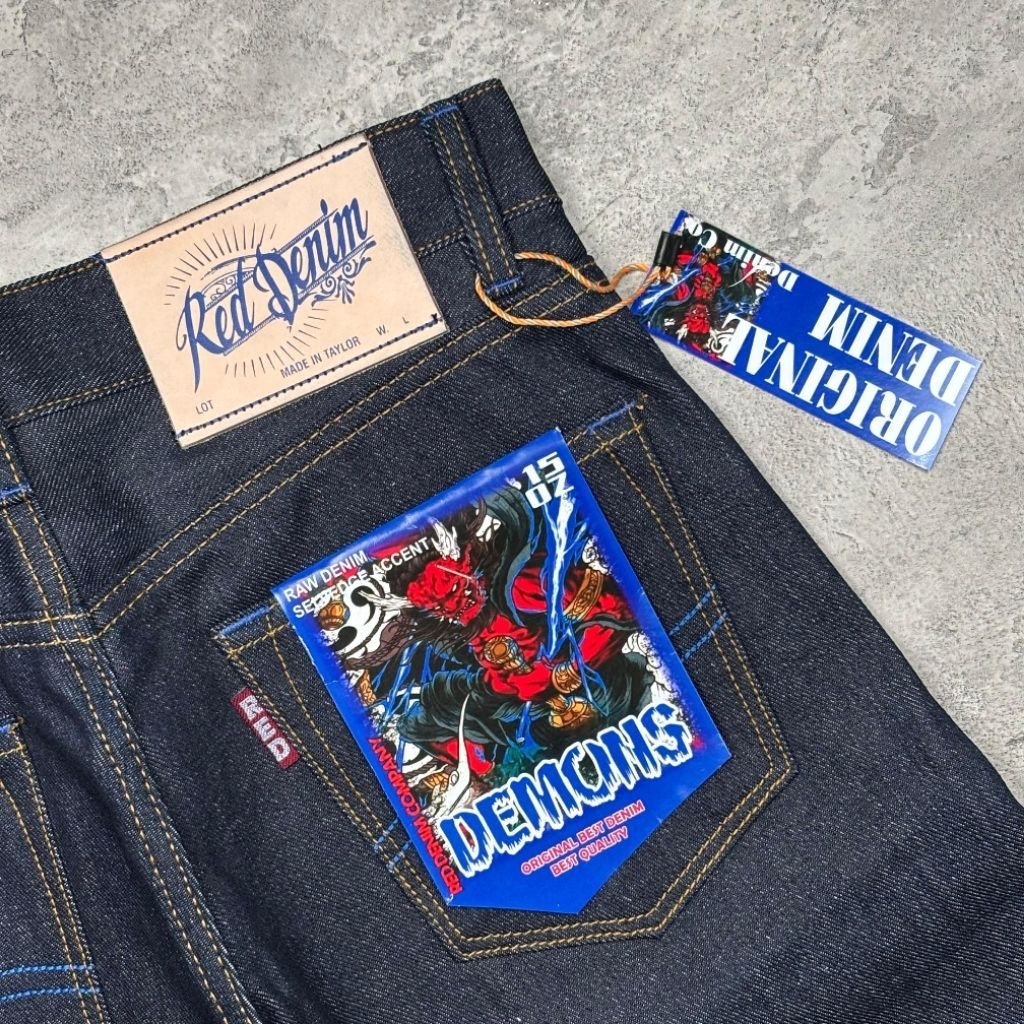 RED DENIM 15Oz - Art DEMONS Sanforized Denim Accent Selvedge Blue Line Original