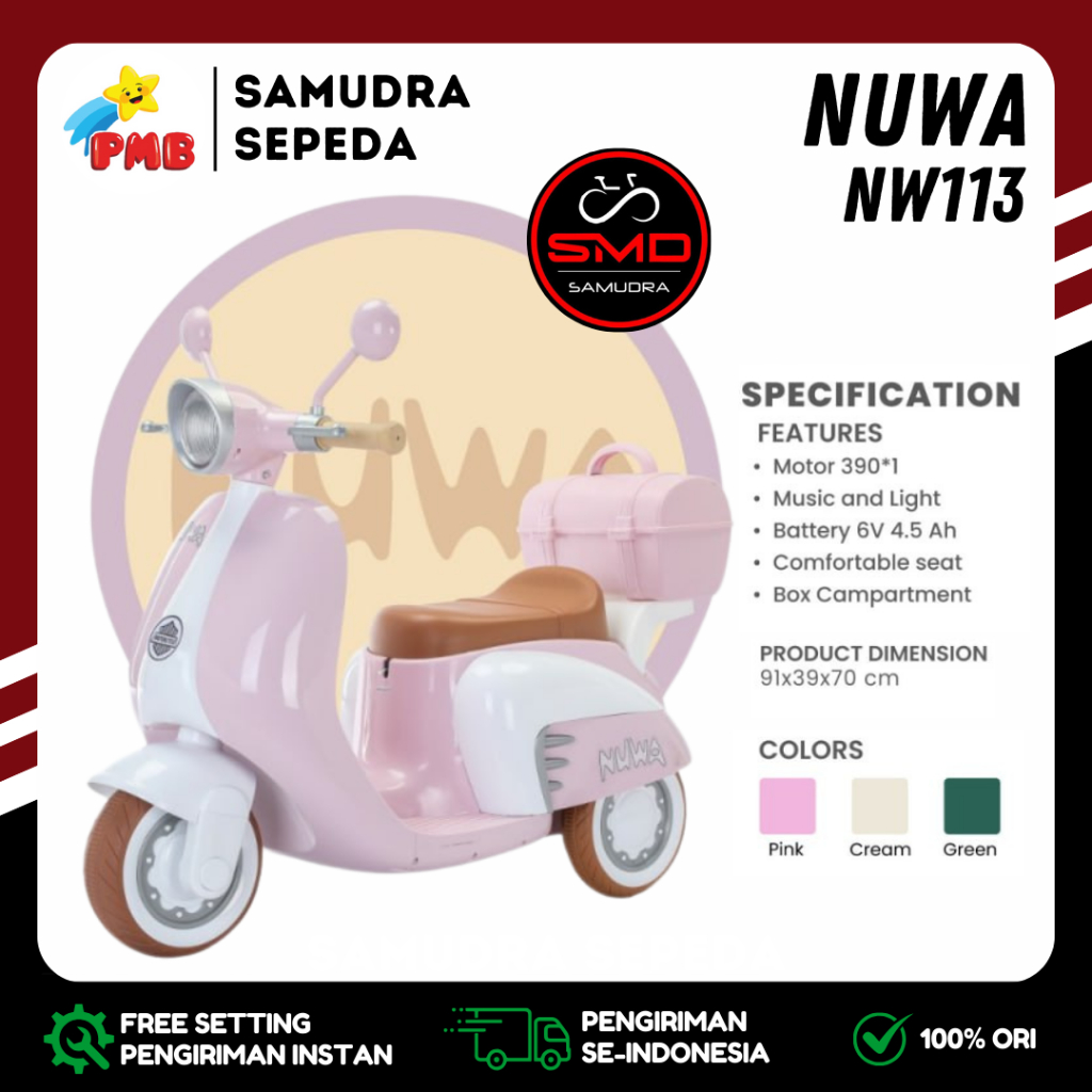 Motor Aki Mainan Anak Merk PMB NUWA 113 / 201 / Exotic EMT 2242 Vespa Mini Musik Box Murah BDG