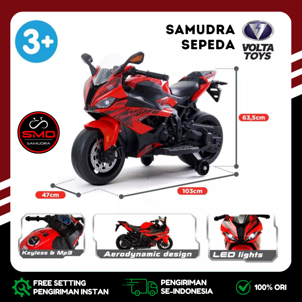 Motor Aki Mainan Anak 12 Volt Cas SHP Volta 5059 Ninja Fighter GAS TANGAN / GAS KAKI Super Sport Murah BDG