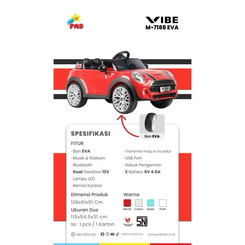 (FREE KARPET ALAS KAKI) Mobil aki anak mini cooper PMB M7188 PM 7612 mortein dual gear cas an listrik