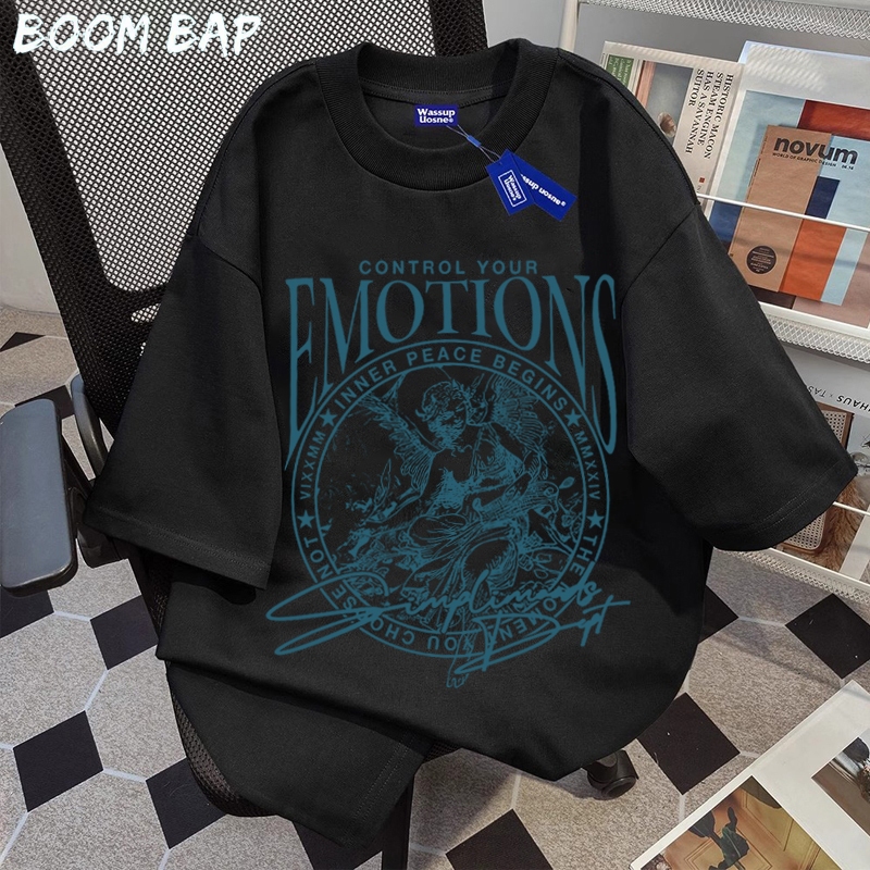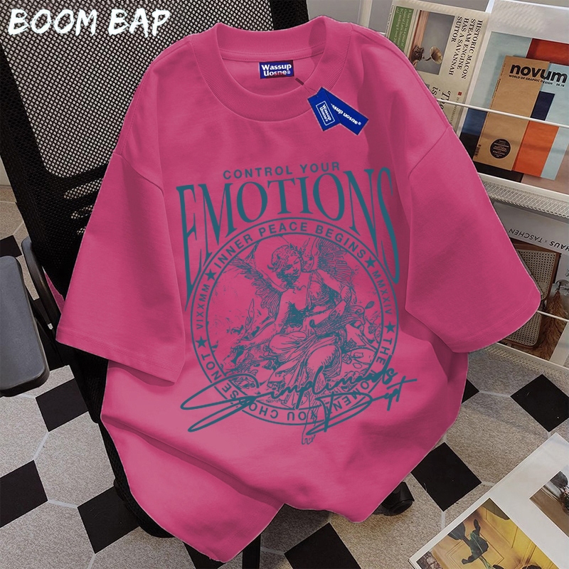 BOOMBAP American retro Style T-shirt Oversize Original Malaikat Print top| Kaos Wanita Cream | Kaos pria dan wanita | Street Style 100 PERSENCotton top 10.9