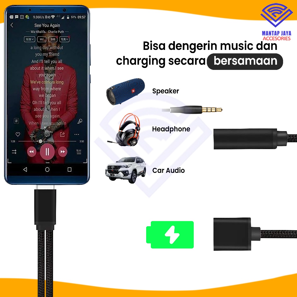 [] TYPE C JACK AUDIO SPLITTER 2 IN 1 JACK 3.5MM WITH CHARGING PORT