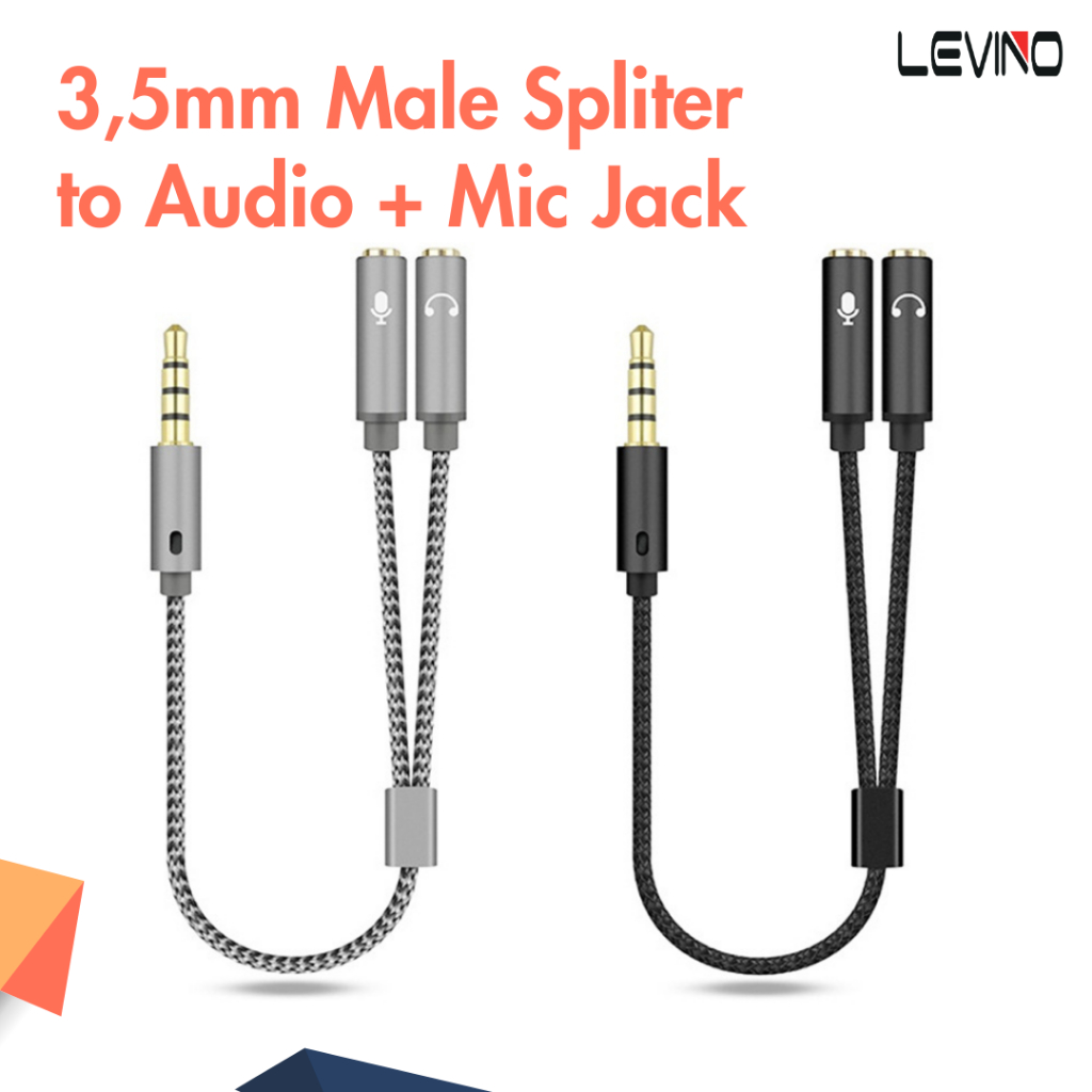 LEVINO Audio Jack Splitter - Audio Jack 3.5mm Male ke Dual 3.5mm Female HiFi (Mic+Earphone) Panjang 25cm