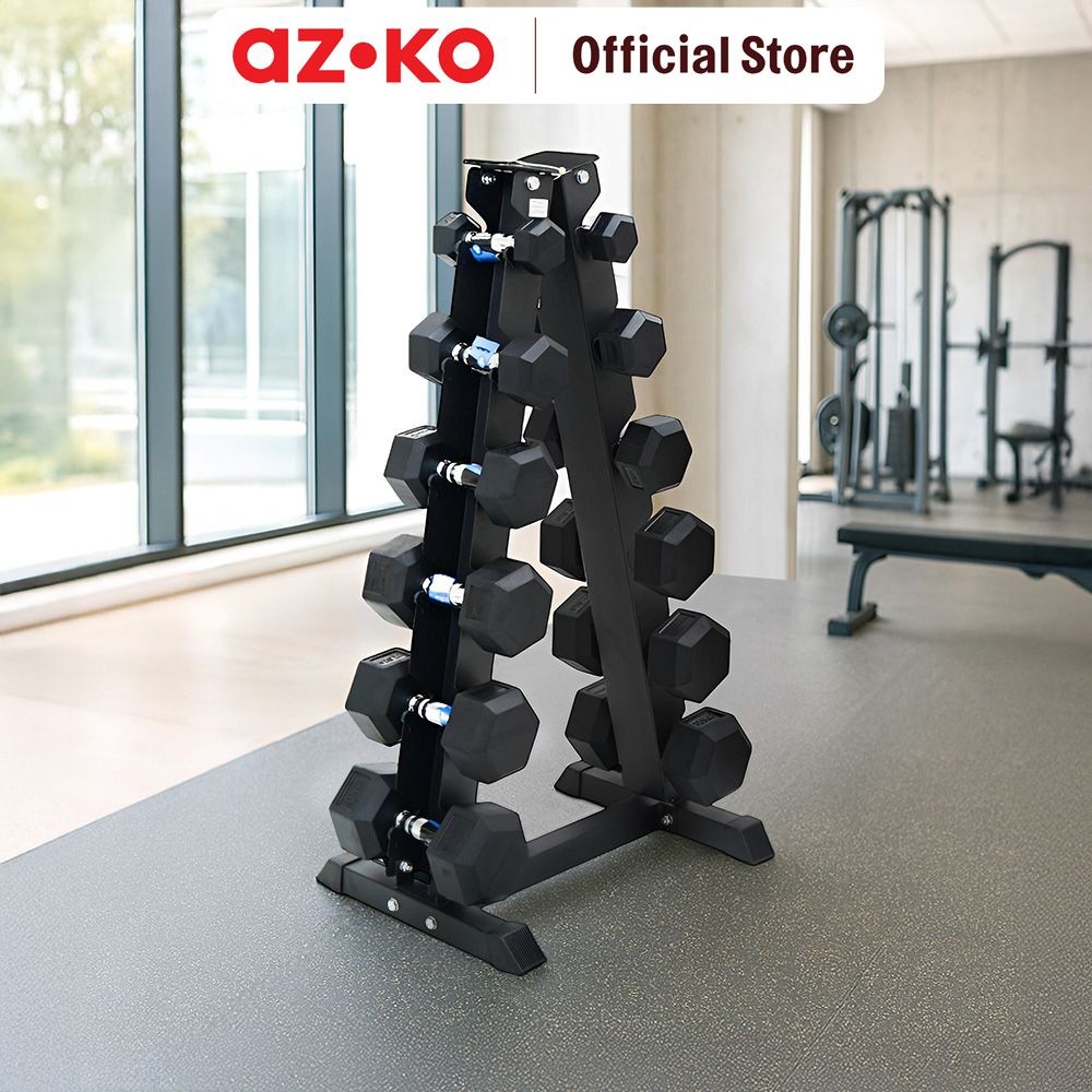 AZKO Kinetic Set 12 Pcs Dumbbell 2-15 Kg Dengan Rak Vertikal Barbel Alat Fitness Alat Gym Peralatan Angkat Beban