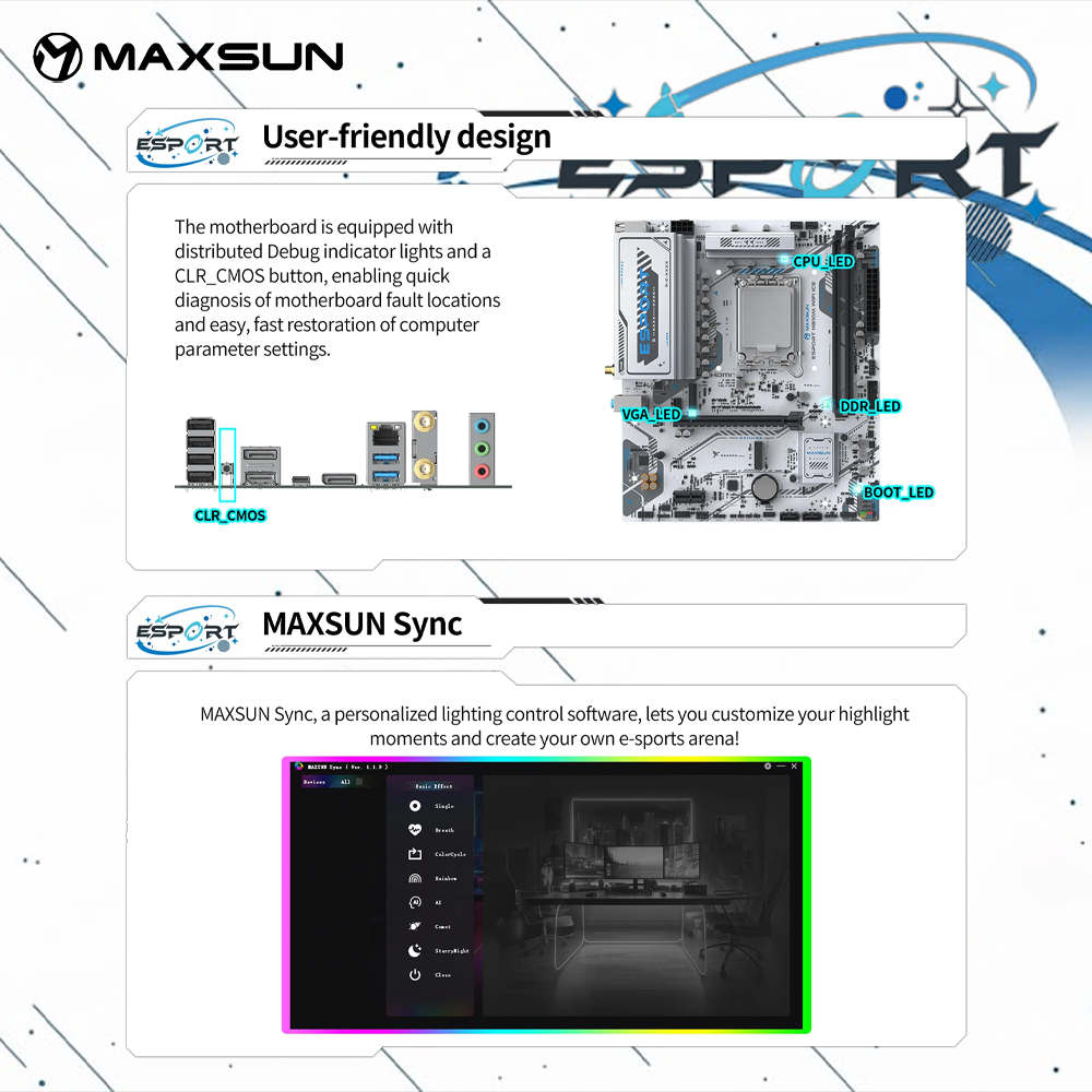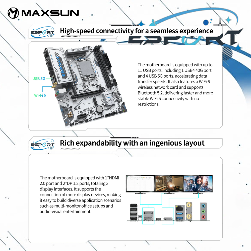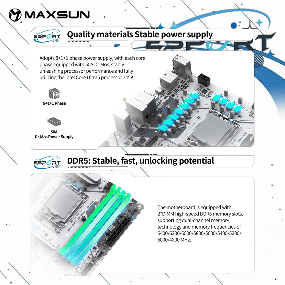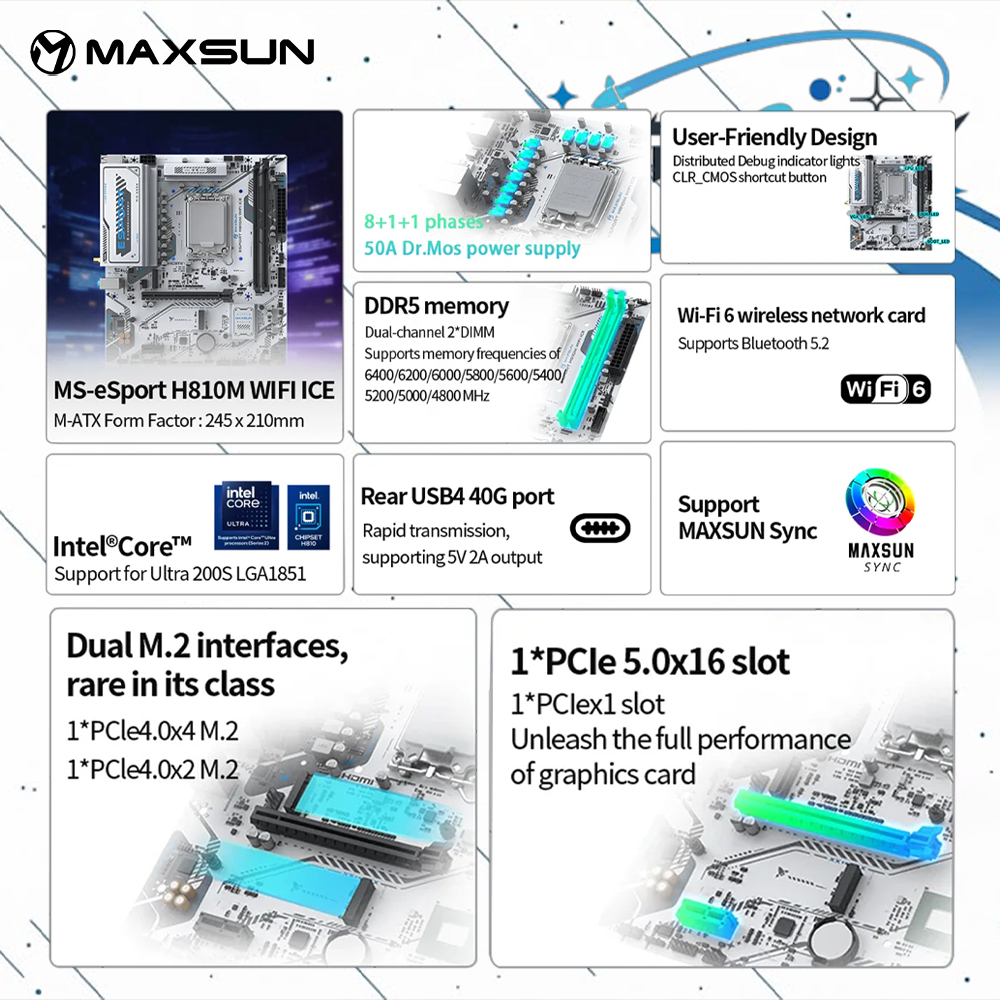 MAXSUN eSport H810M WIFI ICE Motherboard DDR5 LGA 1851 Micro ATX KYO Group Motherboard LGA 1851 M-ATX DDR5