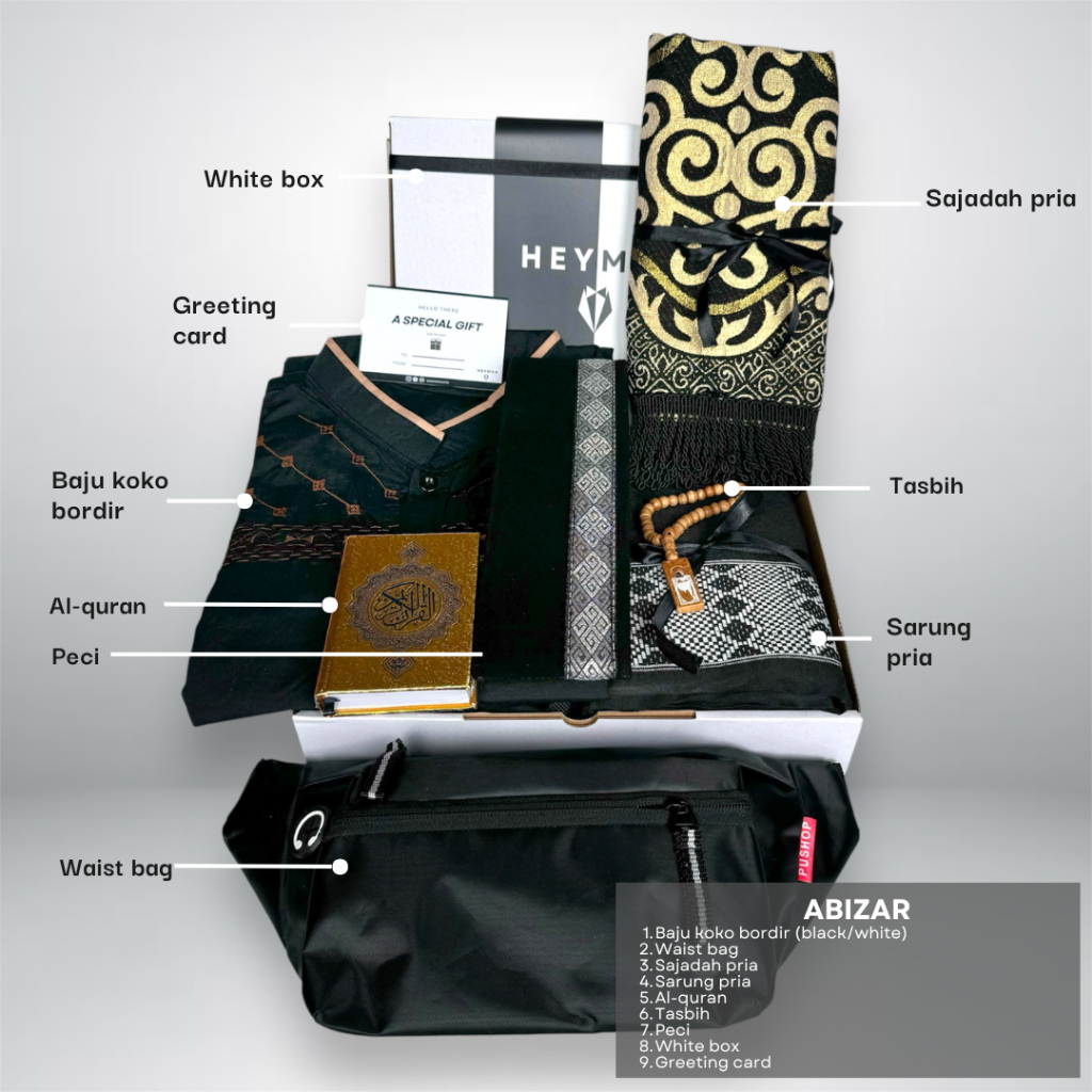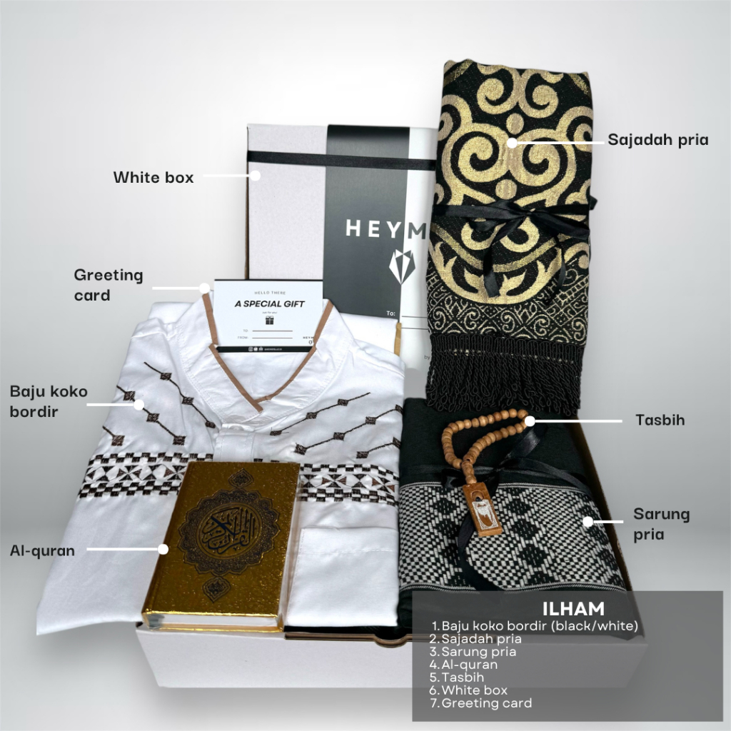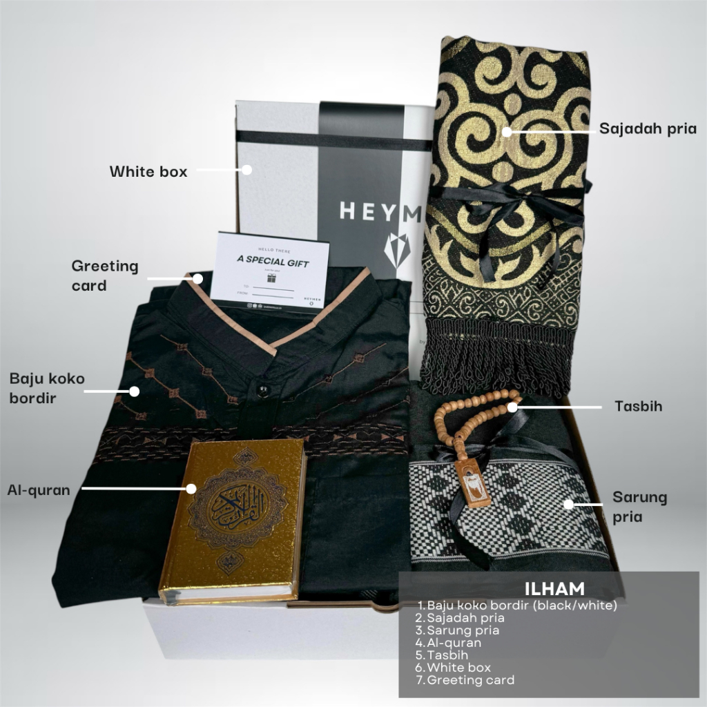 HAMPERS COWOK MUSLIM BAJU KOKO EXCLUSIVE SAJADAH SARUNG TASBIH HANDBAG PRIA ISLAM KADO COWOK ULANG LEBARAN TAHUN COWO KOKOH HEYMEN