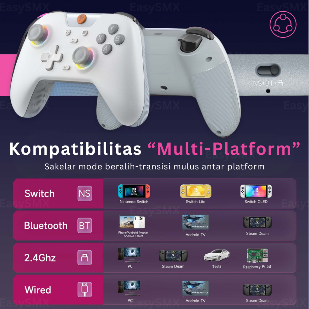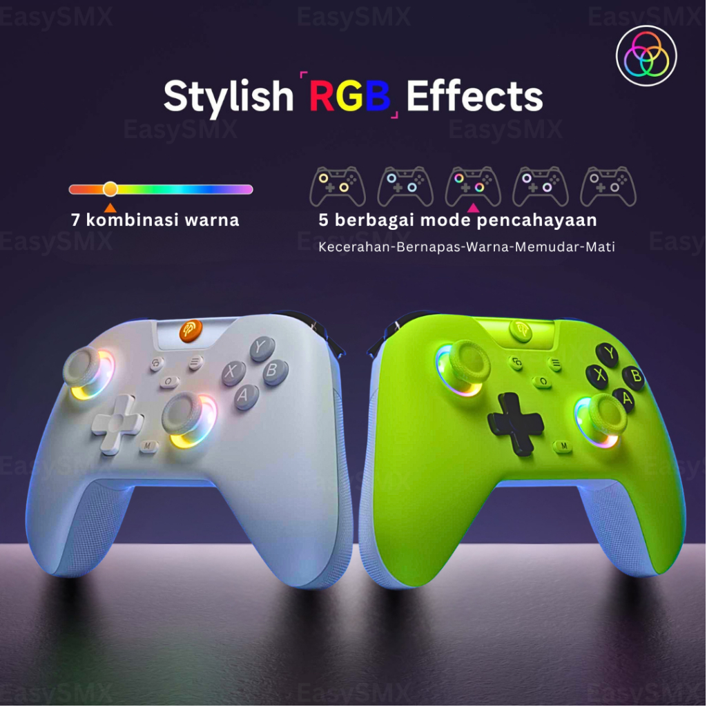 EasySMX X05 Wireless Gamepad Bluetooth Gaming Controller Wireless Gamepad Joystick Hall Effect RGB Light Compatible with PC/Phone/Switch/ Steam Gamer (Garansi 1 Tahun)