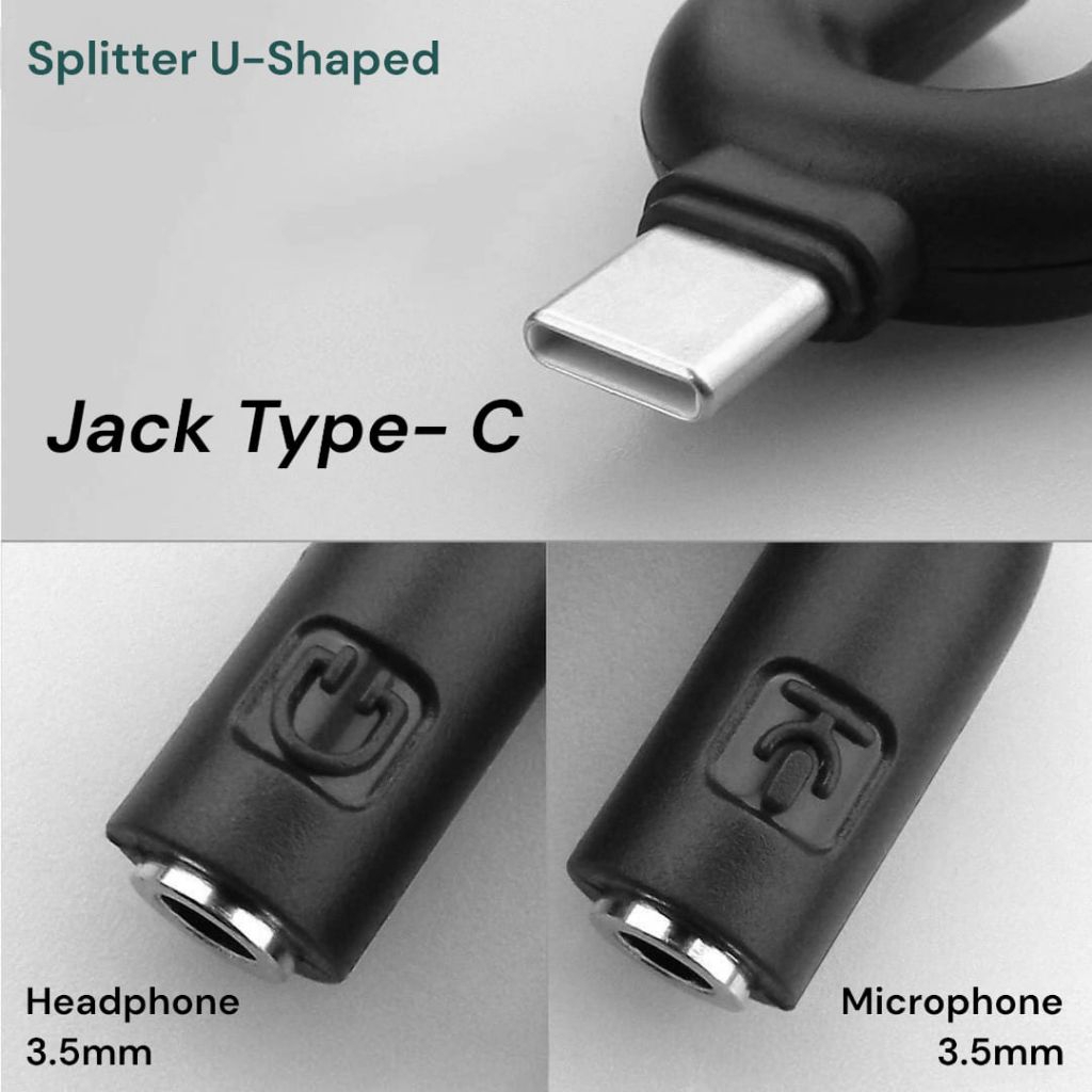 Splitter Audio Type C untuk Mikrofon & Headphone dengan Port 3.5mm