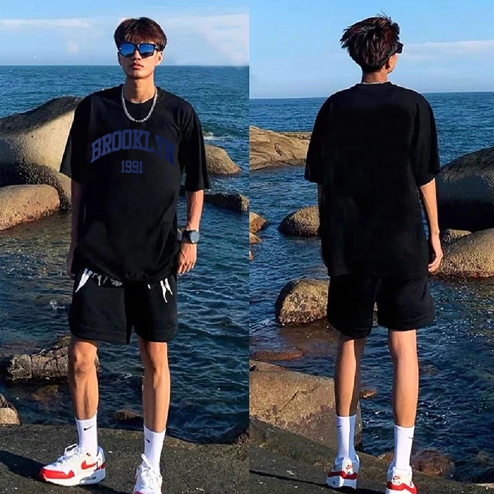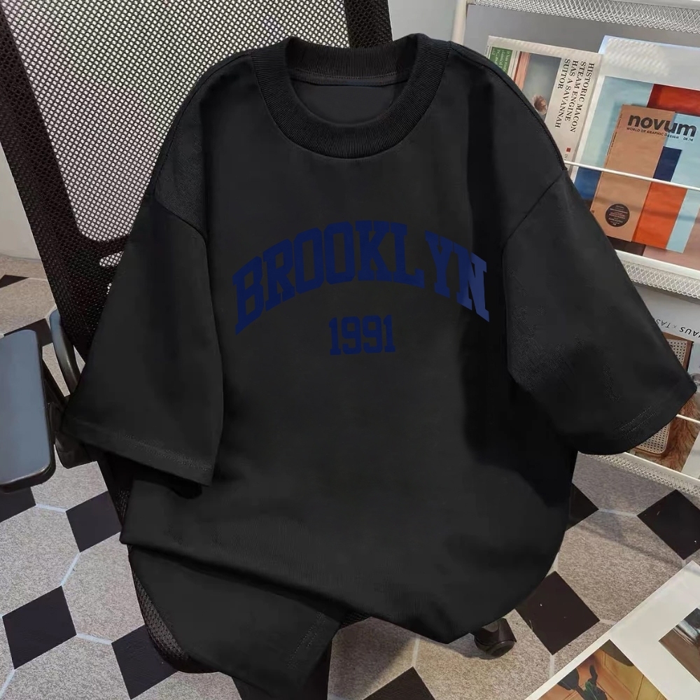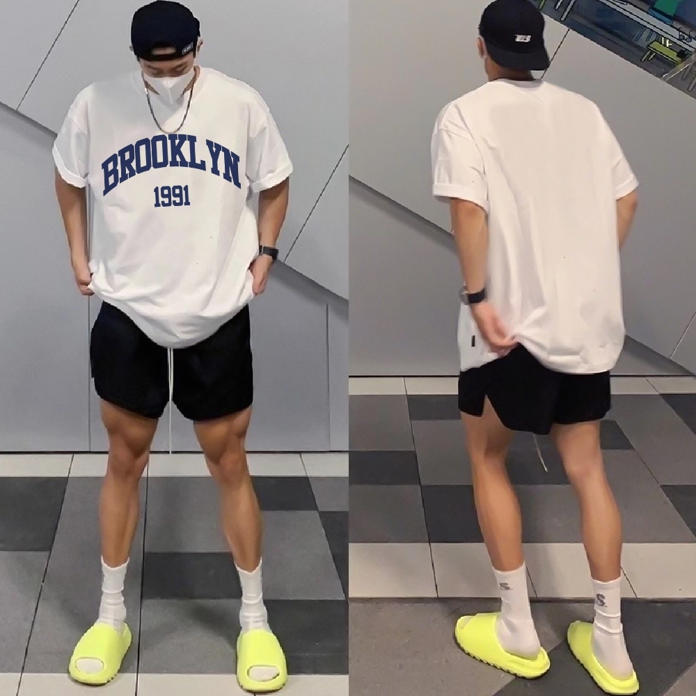 AUZY Kaos boxy pria putih premium |"1991 Brooklyn " Letter sablon T-shirt | unisex | Loose Fashion Round Neck T-shirt Top | baju oversize pria 11.19