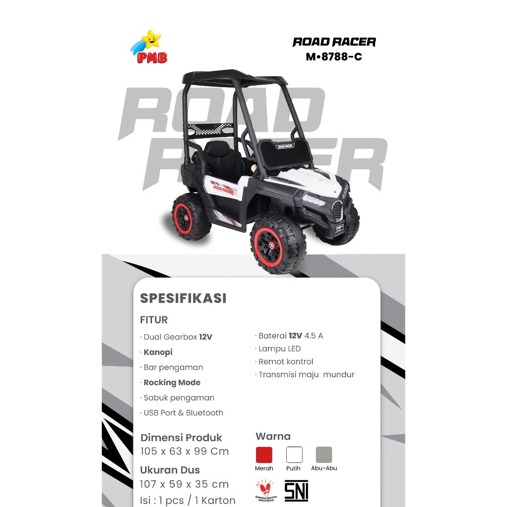 M 8788C M8788C MOBIL AKI ROAD RACER M8788-C MOBIL ANAK dual gearbox rocking e remote control PMB TOYS