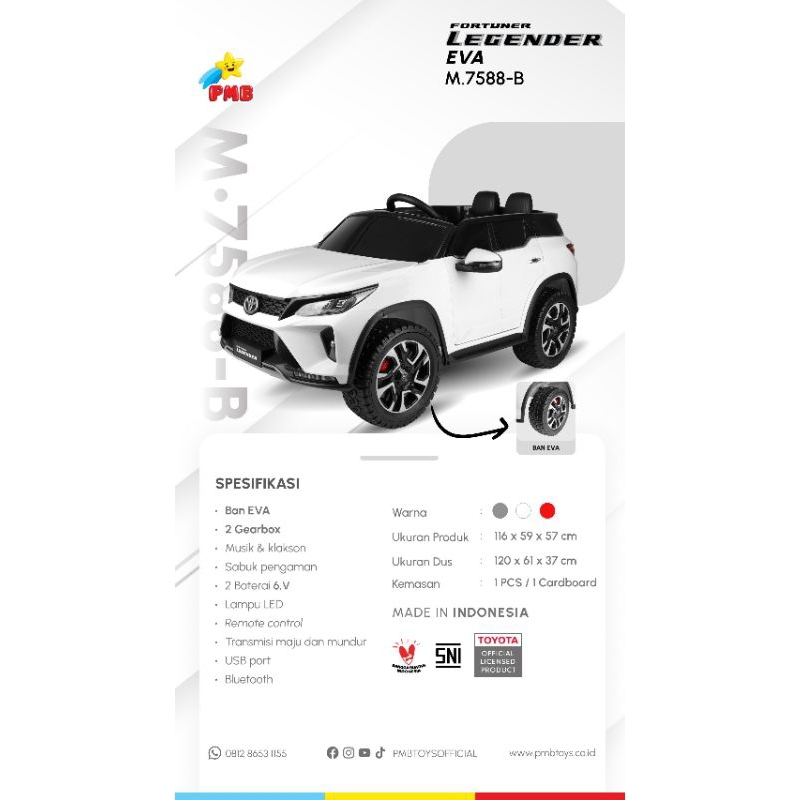 (Free pelapis ban/ karpet ) Mainan Mobil Aki Anak Toyota Fortuner Legender PMB 7588 M7588 M-7588 / M7588B 7588B Lisensi