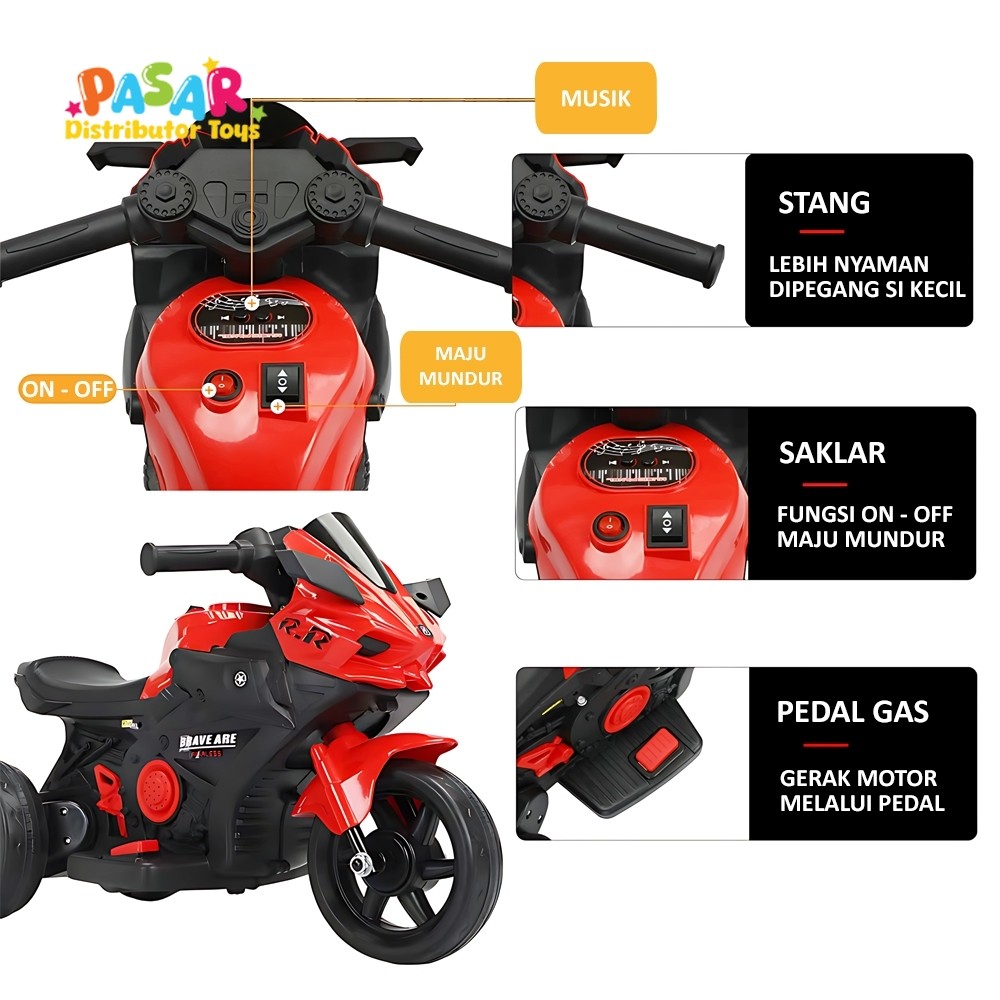 Mainan Anak KT-5189 R.R BRAVE ARE Mainan Motor Aki Anak 3 Roda Aman Musik LED Keren Outdoor