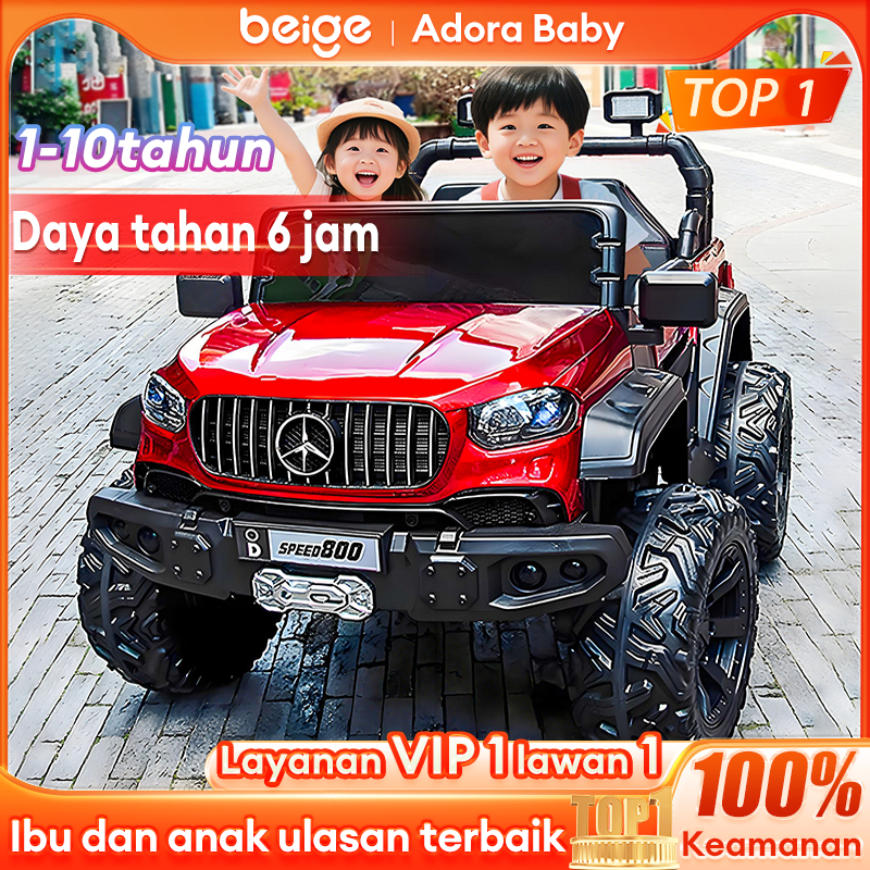 BEIGE Mobil Aki Anak Remote Control Bisa Aplikasi HP 100KG Mainan Mobil Listrik Anak
