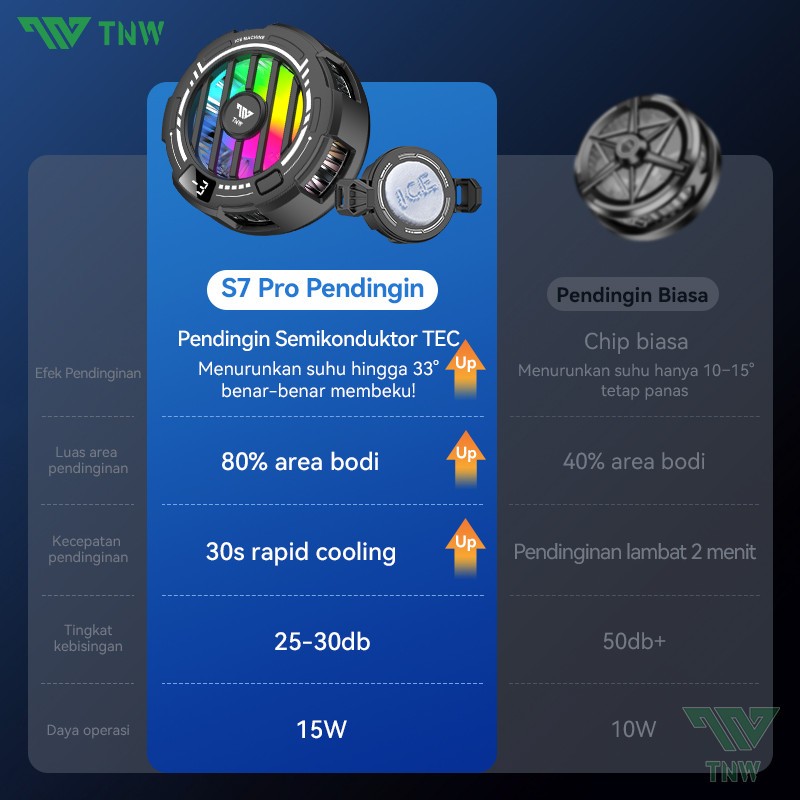 TNW S7Pro Fan Cooler Cooling Hp Gaming Radiator Pendingin Magnetic Dengan Penjepit RGB Light Fancooler Phone Coosler Untuk Streaming/Gaming