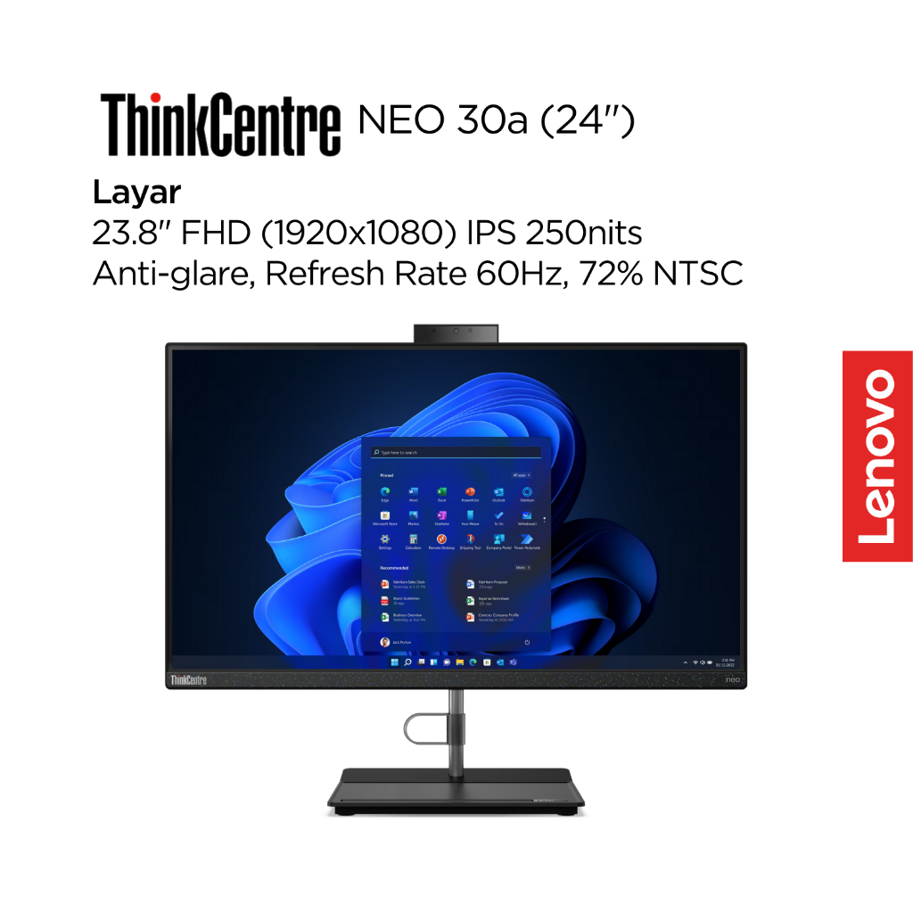 Lenovo PC AIO ThinkCentre Neo 30a 24 7KID Intel Core i3 1215U Win11 Home 8GB 512GB SSD 23.8" FHD IPS 60Hz 72 PERSEN NTSC Integrated OHS WiFi6 All-in-One 24i