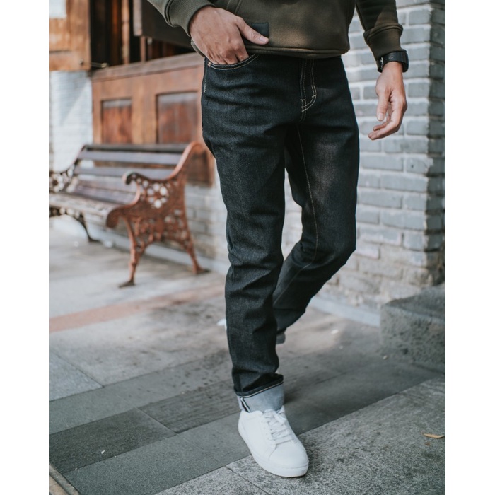Trust Denim-WOLFGANG V1 - Celana Denim Selvedge Accent Black Indigo Denim 13oz Strech Slimfit cut