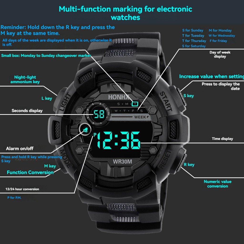 Jam Tangan Digital Tahan Air Pria Jam Tangan Waterproof Elektronik Olahraga Pria Jam Tangan Olahraga Multi-fungsi Dengan Fungsi Tanggal Dan Waktu