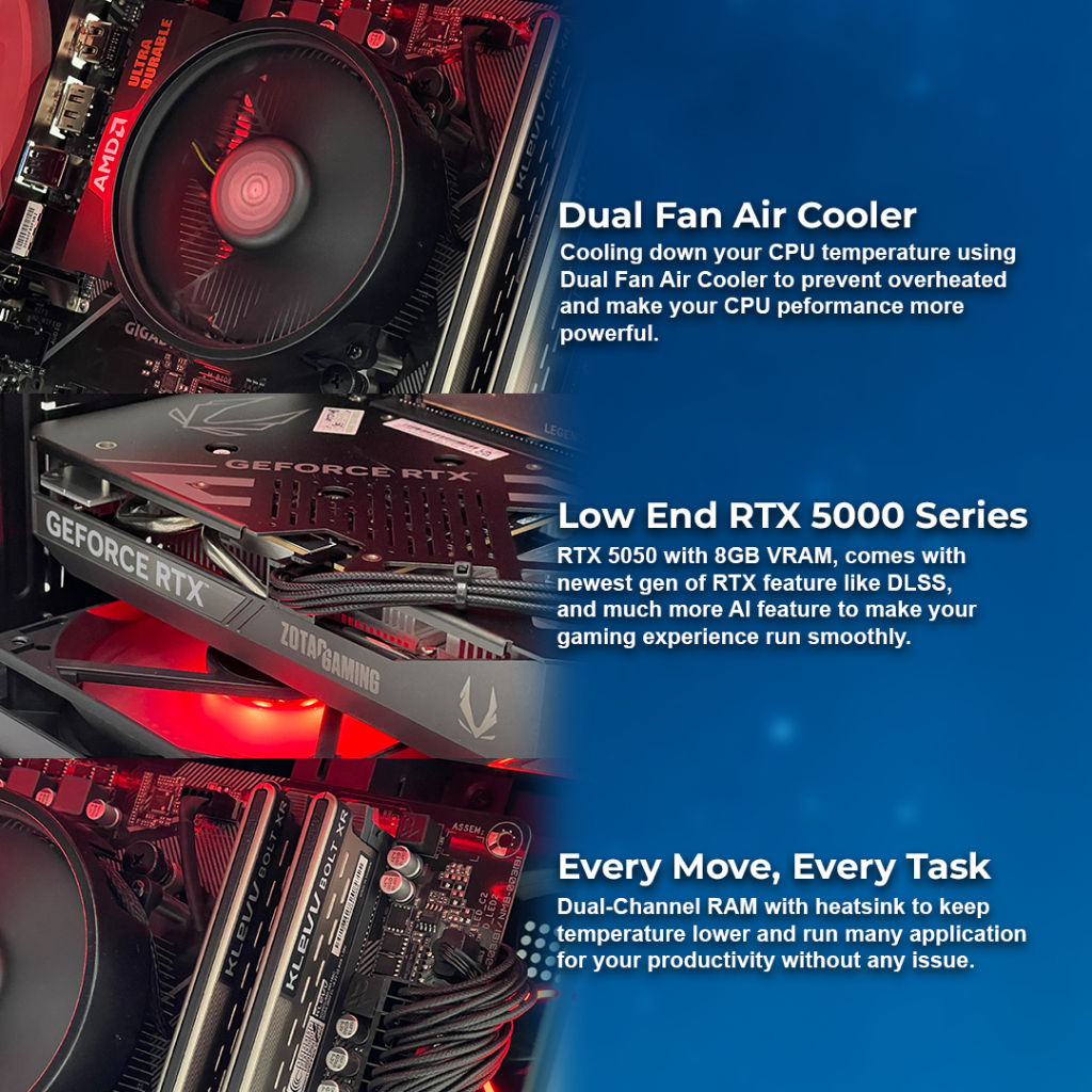 EK Gaming Strike R5 505 - PC Rakitan Gaming Ryzen 5 5600 RTX 5050 8GB RAM DDR4 16GB - Enter Komputer