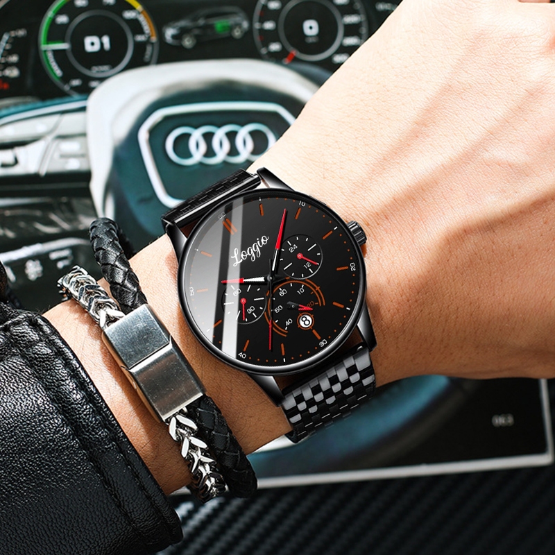 Loggio Jam Tangan Pria Original Display Kuarsa Cahaya malam Anti Air Tali Stainless Steel Santai Mode Jam Tangan Cowok